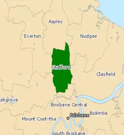 3. ^ "Queensland Electoral Boundaries 1999 (Stafford)" (PDF). State of Queensland, Department of Natural Resources. 1999. Archived from the original (PDF) on 15 June 2009. Retrieved 4 August 2008.
