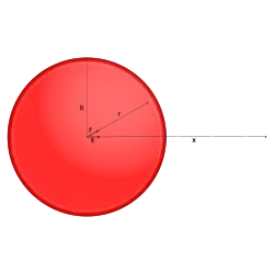 outside the sphere, where is the total charge uniformly distributed in the volume. |