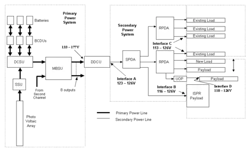 DC-to-DC converter units supply the secondary power system at a constant 124.5 volts DC, allowing the primary bus voltage to track the peak power point of the solar arrays. Uses the "Weinberg Converter" Topology invented by Alan H Weinberg which was published in an ESA conference paper in 1974.