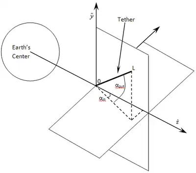 There has been work conducted to stabilize the librations of the tether system to prevent misalignment of the tether with the gravity gradient. The below figure displays the drag effects an EDT system will encounter for a typical orbit. The in-plane angle, α_ip, and out-of-plane angle, α_op, can be reduced by increasing the endmass of the system, or by employing feedback technology.[69] Any deviations in the gravity alignment must be understood, and accounted for in the system design.