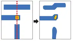 Field stitching. Stitching is a concern for critical features crossing a field boundary (red dotted line).