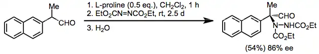 - ^ Baumann, Thomas; Vogt, Henning; Bräse, Stefan (2007). "The Proline-Catalyzed Asymmetric Amination of Branched Aldehydes". Eur. J. Org. Chem. 2007 (2): 266–82. doi:10.1002/ejoc.200600654.