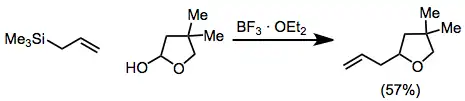 Acetals and ketals are excellent substrates for additions of allyl- and vinylsilanes. In some cases, these compounds react more cleanly than the corresponding carbonyl compounds.[17]