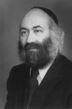 On March 16, 1949, he married Hadassah Schneerson.[3] The wedding was attended by many great rabbis, including Rabbi Eliezer Silver.[4] Hadassa's father, Schneour Zalman Schneersohn,[5] was a first cousin of Levi Yitzchak Schneerson, the father of the 7th Lubavitcher Rebbe, Menachem Mendel Schneerson,[6] who said the first 2 blessings under his wedding chupah.[7] Hadassah[8] is a second cousin of Menachem Mendel Schneerson.