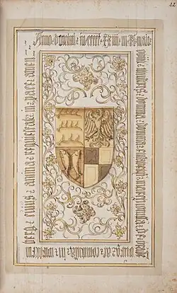 In April or May 1467 she married in Stuttgart Count Eberhard II of Württemberg (1447–1504). Through the marriage of his daughter, Albrecht Achilles was able to exert considerable influence on his son-in-law.[1] Elizabeth's husband was raised to a Duke of Württemberg in 1496. The marriage was childless and was a very unhappy one. Elizabeth spent a lot of time at her father's court. Eberhard abdicated on 11 June 1498 in Horb am Neckar in favor of his nephew Ulrich to the duchy, with an agreement that Ulrich would provide Elisabeth with an income befitting a duchess.[2]