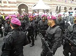 The Elite Forces of Malaysia (Malay: Pasukan Elit Malaysia) are specialised, highly trained units drawn from various branches of the Malaysian military, law enforcement, and government agencies. In Malaysia, the term Elite Forces serves as an umbrella term encompassing special forces, special operations units, specialised firefighting teams, and other uniquely trained groups within the uniformed services (Pasukan beruniform).[1][2][3]