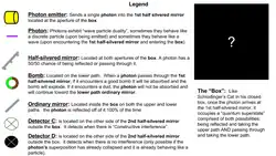 - A pair of photon detectors: located outside the box, they are aligned with the second beam-splitter. The photon can be detected at either or neither, but never both.