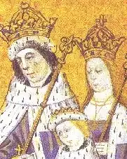 2. ^ John's marriage to Isabel of Gloucester was annulled shortly after his accession, and she was never crowned; Henry IV's first wife Mary de Bohun died before he became king.