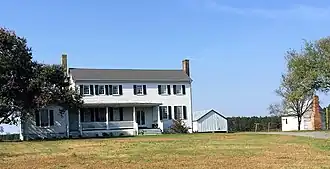 Elm Grove, also known as the Williams-Rick House, is a historic plantation house located near Courtland, Southampton County, Virginia. The original section was built about 1790, and enlarged by its subsequent owners through the 19th century. The main section is a two-story, six-bay, frame dwelling sheathed in weatherboard. It has a side gable roof and exterior end chimneys.[3] Three noteworthy early outbuildings survive. Directly north of the house is a single-story, one-cell frame building probably erected as an office and used at the turn of the century as a school.