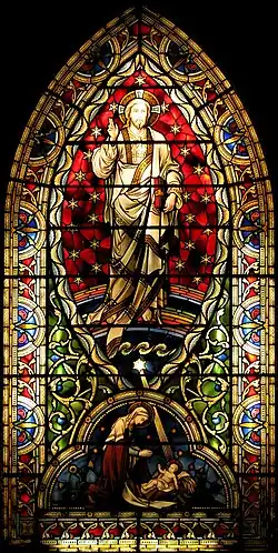 Rev. William Chauncy Langdon,[14] the first rector, had previously founded "Grace Church" in Rome (later renamed St. Paul's Within the Walls) in 1859,[15] and St James's in Florence, in about 1870. He and George Washington Holland (commemorated in the "South" side window, S1) were two of the co-founders of the YMCA.