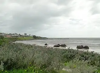 A small jetty dates to 1918. Originally 109 metres (358 ft) long, it allowed ketches such as Karatta to tie up to load cargoes, while a nearby fresh water well serviced horses which pulled wagons down to the bay.[8] Until the 1930s, grain, stock and merchandise were taken to and from Kangaroo Island from this jetty.[9]