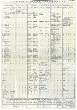 - ^ This chart, which measures 15" by 22" and folds up several times to fit in the volume, was sent with instructions that it be bound at the end of the Chemistry article in the main encyclopedia. This whole story can be read in detail in the preface to the 7th edition, as well as in David Brewster's article for the Edinburgh Review, which he wrote reviewing the 7th edition when it was published in 1842