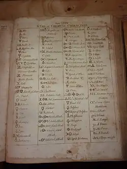 List of the main symbols used in chemistry before the periodic table was invented. From article "Chemistry" written by James Tytler.