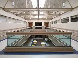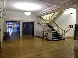 Originally, the north wing of the Woman's Building was home to the Household Science Department (later called the Department of Home Economics). The north wing included classrooms, test kitchens, and a chemical laboratory. The south wing was primarily social spaces for female students, along with offices for the Dean of Women. The building's central mass had a pool and locker rooms on the first floor; the second floor was a gymnasium with a balcony over its south end.[2] The Woman's Building was intended to be a "safe space" for women at the university; men were not initially allowed inside, although this policy gradually loosened.[3]