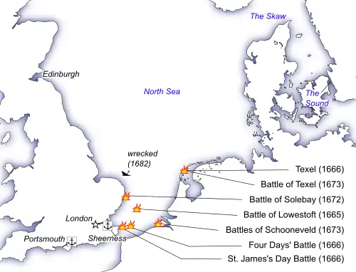 51. ^ a b "The Battle of the Texel, 11–21 August 1673". Royal Museums Greenwich. Retrieved 2 November 2022.