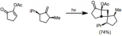 - ^ Crimmins, M. T.; Reinhold, T. L. (2004). "Enone Olefin [2 + 2] Photochemical Cycloadditions". Org. React.: 297–588. doi:10.1002/0471264180.or044.02. ISBN 0471264180.
