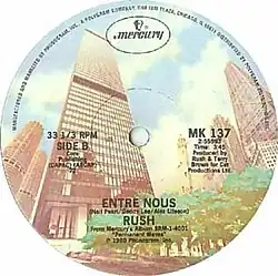 "Entre Nous" ("Between Us" in French) is the fourth track on the 1980 album Permanent Waves by progressive rock band Rush. It was also released as a single. The song appeared on the concert album Snakes & Arrows Live, released on April 15, 2008.
