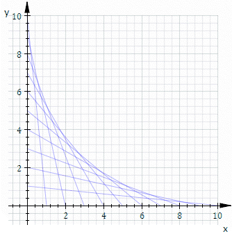 For example, let Ct be the line whose x and y intercepts are t and 11−t, this is shown in the animation above. The equation of Ct is