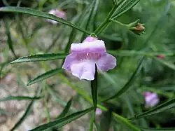 Eremophila hughesii is a flowering plant in the figwort family, Scrophulariaceae and is endemic to Australia. It is spindly, glabrous shrub with narrow leaves and with flowers that vary in colour from blue to pink, sometimes white. It is endemic to Western Australia and the Northern Territory.