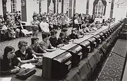 Contemporary esports has roots in competitive face-to-face arcade video game competitions. A forerunner of esports was held by Sega in 1974, the All Japan TV Game Championships, a nationwide arcade video game tournament in Japan.[17][18][19] The tournament was intended by Sega to promote the play and sales of video games in the country. There were local tournaments held in 300 locations across Japan, and then sixteen finalists from across the country competed in the final elimination rounds at Tokyo's Hotel Pacific. Prizes awarded included television sets (color and black-and-white), cassette tape recorders and transistor radios. According to Sega, the tournament "proved to be the biggest event ever" in the arcade game industry, and was attended by members from leading Japanese newspapers and leisure industry companies.[17] Sega stressed "the importance of such tournaments to foster better business relationships between the maker-location-customer and create an atmosphere of competition on TV amusement games".[18][17] In 1977, Gremlin Industries (a year before being acquired by Sega) held a marketing stunt to promote their early arcade snake game Hustle in the United States, involving the "Gremlin Girls" who were a duo of professional female arcade players called Sabrina Osment and Lynn Reid.[20][21] The pair travelled across 19 American cities, where players could challenge them in best-of-three matches for a chance to win money. The duo were challenged by a total of 1,300 players, only about seven of whom managed to beat them.[21]