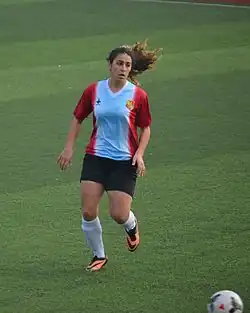 Esra Solmaz (born March 20, 1995) is a Turkish women's football striker, who last played in the Turkish Women's Third League for Balokesir Büyükşehir Belediyespor with jersey number 9. In 2011, she played for the Turkish girls' national U-17 team.[1]