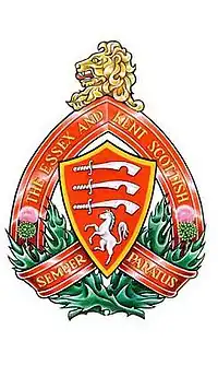 ![]() The cap badge of the Essex and Kent Scottish | |
