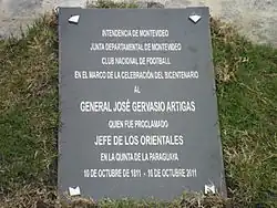 Before the existence of Parque Central as a sports ground, in exactly the same location (which used to be known as "Quinta de la Paraguaya"), Uruguay's national hero José Artigas was named Jefe de los Orientales (leader of the Uruguayan people) in 1811.