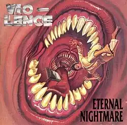 Eternal Nightmare is the debut album by the San Francisco Bay Area thrash metal band Vio-lence. It was released on June 27, 1988[1] through MCA Records' Mechanic sublabel. A limited 10" promo single was released, featuring two tracks, 'Eternal Nightmare' and 'Phobophobia.'; the release was quite unique, as it came in a "vomit pack", a sealed plastic cover containing fake vomit.[5] Shortly after, thrash metal innovators Slayer released a single in a similar format but with fake blood, and rock band The Revolting Cocks released a single with fake semen.