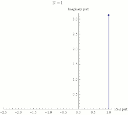Euler's identity therefore states that the limit, as n approaches infinity, of is equal to −1. This limit is illustrated in the animation to the right.