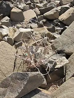 Euphorbia longituberculosa is a species of flowering plant in the family Euphorbiaceae, endemic to the Arabian Peninsula and North-east Africa.[1] It inhabits rocky terrain, sheltered among stones or under small shrubs; from sea level to 1,800 m (5,900 ft).[2]
