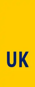 United Kingdom vehicles must have a white front registration plate and a yellow rear registration plate. These must be made made from a reflective material, commonly plastic but metal is permitted.[18] Post-2021 Regulations (Following Brexit): On 28 September 2021, the UK government changed the international vehicle code from "GB" to "UK" and notified the United Nations of this update,[19] effectively making all "GB" plates with the European circle of stars invalid for use abroad.[19] Since 2021, plates with the European circle of stars must not be issued. Plates valid for international travel under the Vienna Convention on Road Traffic must feature either the distinguishing code "UK" (in black or blue) or the Union Flag (landscape) alongside "UK." A green stripe on left-hand side of the plate is permissible for a zero-emission vehicle.[20] In England, Scotland, and Wales, registration plates may include one of the following flags with identifying letters on the left-hand side:[21]