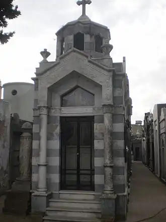 His remains rest in the Recoleta Cemetery in the family vault, declared a National Historic Landmark, by decree no. 3039 of 1946 of the National Executive Power.