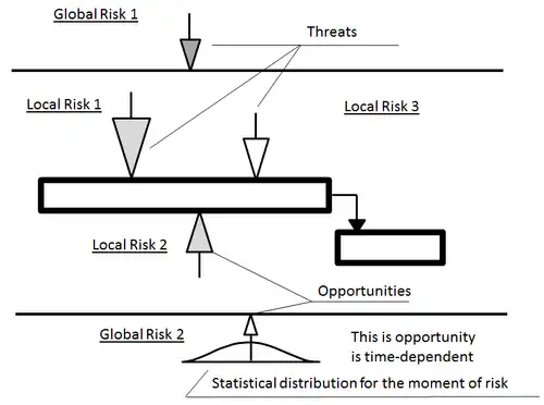 In Event chain methodology, risk can not only affect schedule and cost, but also other parameters such as safety, security, performance, technology, quality, and other objectives. In other words, one event can belong to different categories.[15] The result of the analysis would show risk exposure for different categories as well as integrated project risk score for all categories. This integrated project risk score is calculated based on relative weights for each risk category.
