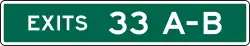 Exit numbers in the United States are assigned to freeway junctions, and are usually numbered as exits from freeways. Exit numbers generally are found above the destinations and route number(s) at the exit, as well as a sign in the gore. Exit numbers typically reset at political borders such as state lines. Some major streets also use exit numbers. Freeway exits in the United States are usually numbered in two formats: distance-based and sequential.