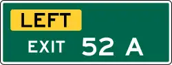 An example of a green exit number plaque for a left exit with a yellow "left" panel