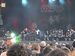 Exodus is an American thrash metal band formed in 1979 in Richmond, California.[1] Their current lineup consists of guitarists Gary Holt and Lee Altus, bassist Jack Gibson, drummer Tom Hunting, and lead vocalist Rob Dukes. Notable former members include vocalists Paul Baloff and Steve "Zetro" Souza, drummers John Tempesta and Paul Bostaph, and founding guitarist Kirk Hammett who later joined fellow Bay Area thrash metal band Metallica. There are no original members left in Exodus other than Hunting, who had departed from the band twice, in 1989 and 2004, but rejoined in 2007. Holt, who has been in the band since 1981, is the only member to appear on all of Exodus' recordings. Much of the band's career has been affected by lineup changes, feuds between both band members and record companies, two extended hiatuses, deaths of former band members, and drug addictions.[2]