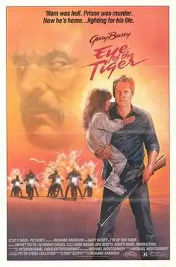 Eye of the Tiger is a 1986 American action film directed by Richard C. Sarafian, and stars Gary Busey, Yaphet Kotto, Denise Galik, Seymour Cassel, William Smith, and Judith Barsi. Busey plays a wrongfully incarcerated ex-convict who fights back against the biker gang harassing his hometown and the crooked sheriff protecting them. The film marked the beginning of the actor's transition to the action roles that would epitomize his career for much of the late 1980s and 1990s.