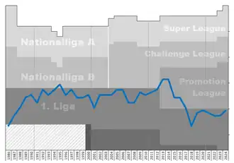 Chart of FC Tuggen table positions in the Swiss football league system