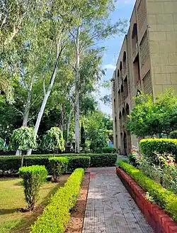 The BE course in civil engineering was started in 1979.[3] The Faculty of Engineering and Technology officially came into being in 1985. Undergraduate programmes in civil, electrical and mechanical engineering began is as old as the institution. Undergraduate programmes in electronics engineering began in 1996 and in computer engineering began in 2000.[4] The building was inaugurated in October 1995. The four-storey structure has pointed arches adorning the windows. The entrance itself is pyramid shaped.