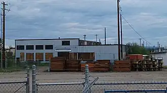 The Fairbanks Exploration Company Machine Shop is a historic machine shop in Fairbanks, Alaska, United States. Located behind the Fairbanks Exploration Company (F.E. Company) administration building at 612 Illinois Street, it is a large single-story steel-frame structure, built in 1927 to serve the company's nearby gold mining operations.[2] Its easternmost section is 16 feet (4.9 m) high, while that on the west is 20 feet (6.1 m) high, in order to accommodate belt-driven equipment and cranes. A tall double door at the center of the east facade is the main entrance. The front of the building housed large belt-driven lathes, while the center had a welding shop, drill presses, and a tool room. A blacksmithy in the back had a sand floor. The building was used by the F.E. Company between 1927 and 1964.[3]