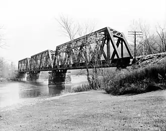 The Fairmont Railroad Bridge is a truss bridge that carries the Norfolk Southern Railway across the Monongahela River just north of Fairmont, West Virginia. The bridge was built in 1853 as one of the early works of Albert Fink, the engineer who popularized the use of iron structures as opposed to those that are made of stone masonry or wood. It was reconstructed in 1912 and continues to serve as a major industrial route.