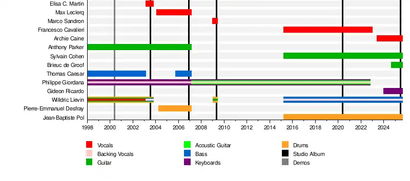 • Philippe Giordana - keyboards, backing vocals (1998-2022, died in 2022), acoustic guitars (2007-2022)