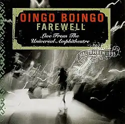 Farewell: Live from the Universal Amphitheatre, Halloween 1995 is a double live album and home video release by American new wave band Oingo Boingo, documenting their final concerts and ending on Halloween night of 1995. The band played a series of five nights,[1] ending on Halloween night by playing more than 44 songs during a 4-hour set that went past midnight.[2] As with all of their live shows, the setlist included songs from across the band's large discography, many of which were given new arrangements.
