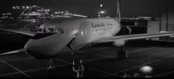 The "Consolidated Airways" jet aircraft used in the film, called "Blue Ribbon", was one of two fabricated from DC-7(B) donors, the second used to create the crash scene on the beach. The wings were reportedly removed and reversed, and a Boeing 707 nose cone along with "supersonic spike" were also added in order to achieve the appearance of a modern jet airliner. Modifications to the rear section of the aircraft included the addition of two nacelles to accommodate the simulated jet engines. A rear-mounted Boeing 707 spike-styled HF antenna isolator and antenna were added to the tail section.[5]