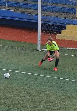 After two seasons, she returned to her former club Konak Belediyespor.[1] Şahin played in three matches of the 2017–18 UEFA Women's Champions League qualifying round in Tbilisi, Georgia.[12][13][14]