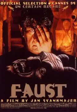 Faust (Czech: Lekce Faust, lit. 'Lesson Faust') is a 1994 drama film directed and written by Jan Švankmajer. An Czech Republic-led production with co-production support in France, the United Kingdom, the United States and Germany, the film merges live-action footage with stop-motion animation, including puppetry and claymation.