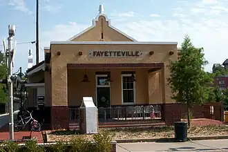 The Frisco Depot (Frisco being a common shortening of the St. Louis – San Francisco Railway) in Fayetteville, Arkansas, is a railroad depot built in 1925. The last passenger trains left Frisco Depot in 1965, and starting in 2011, the depot's interior houses a Chipotle Mexican Grill.[2] The property was listed on the National Register of Historic Places on December 8, 1988.