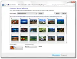 Windows 7 introduces a desktop slideshow feature that periodically changes the desktop wallpaper based on a user-defined interval; the change is accompanied by a smooth fade transition with a duration that can be customized via the Windows Registry.[9] The desktop slideshow feature supports local images and images obtained via RSS.[10][11][12]