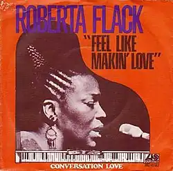 Released nine months before the album of the same title, the song scored a week at number 1 on the Billboard Hot 100 singles chart. It was Flack's third #1 single, making her the first female vocalist since 1940 to top the chart in three consecutive years.[3] "Feel Like Makin' Love" also had five weeks at #1 on the Hot Soul Singles chart.[4] and two weeks at #1 on the Adult Contemporary charts of both Canada[5] and the U.S. Flack co-produced the record under the pseudonym Rubina Flake, with Eugene McDaniels. It went on to receive three Grammy nominations for Flack: Record of the Year, Song of the Year, and Best Female Pop Vocal Performance.