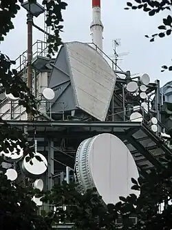 The new tower acts as a relay transmitter for frequencies of the types VHF, DAB+, microwave, airband as well as LPWA for the Internet of things and telehousing.[2] Like its predecessor, it does not contribute to any cellular network.